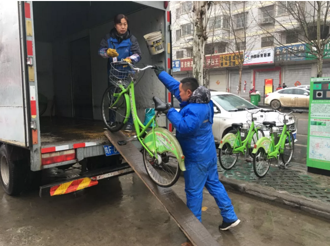 年初六清晨6點(diǎn)20分,雨夾著雪飄飄灑灑,街上偶有汽車(chē)駛過(guò),行人很少。劉艷梅和往常一樣匆匆趕到公共自行車(chē)維修部倉(cāng)庫(kù),和駕駛員丁承民碰頭。檢測(cè)完車(chē)輛是否能正常運(yùn)行后,就接到了管理中心總調(diào)度室的指令:“學(xué)府雅苑站點(diǎn)的車(chē)輛太多,請(qǐng)前往處理?!?