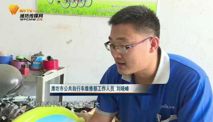 濰坊市公共自行車維修工作人員劉曉峰:因為夏天了,騎行量是非常大,所以說維修工作量也很大,維修師傅們每天都加班加點,僅高新庫,一天維修可達150輛左右,故障車輛運回來以后,不管是再小的一個毛病,我們也要整車全部檢修一遍,就是保證車輛出去以后市民騎行的安全。